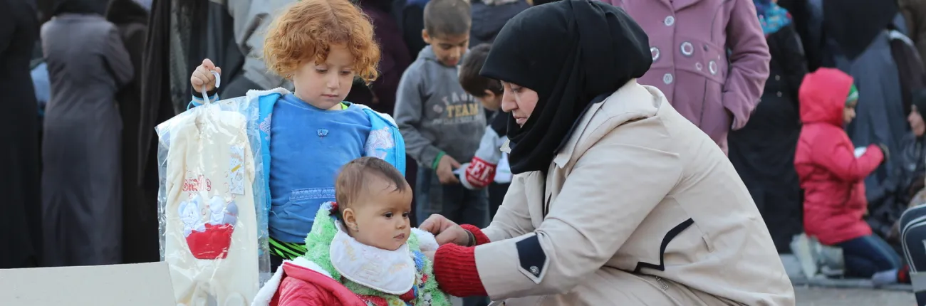 As temperatures continue to drop, families staying in shelters and other areas are facing the bitter cold with little protection. In response, UNICEF has provided all newborn infants and children under the age of one in the shelters in Jibreen with warm clothing kits. The kit includes baby blankets, gloves, warm hats, socks, a coat, a carrying bag and hygiene supplies such as a towel, powder, shampoo, diapers and bars of soap for babies.