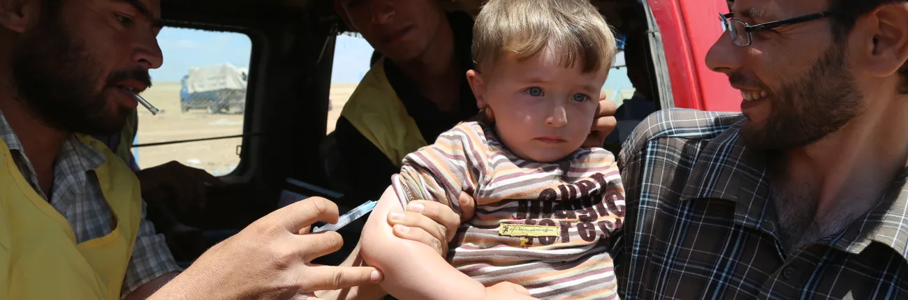 Avant la crise actuelle, la couverture vaccinale en Syrie était l’une des meilleures dans la région. Avant le conflit, elle était de 80 %, mais elle a chuté à 41 % en 2015. Dans certains secteurs contestés, la vaccination de routine est entièrement interrompue, ce qui déclenche des épidémies de maladies, dont la rougeole.
