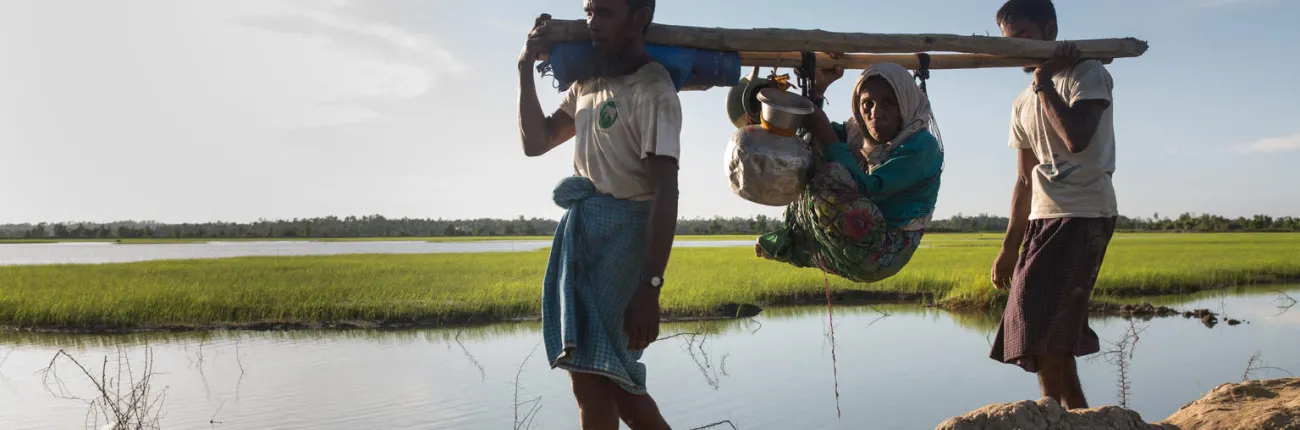 J’ai vu une jeune fille transportant un garçon dans la boue. C’était ma première journée ici. Nous avions marché deux heures à travers des rizières inondées. Je suis un homme en forme. Certains de ces gens avaient marché de six à 10 jours en n’ayant à manger qu’une petite quantité de riz. Il y avait cette jeune fille qui tenait son frère pour le mettre en sécurité et qui avait l’air totalement épuisée. La mère et le père de leur côté transportaient chaudrons, casseroles et…grand-maman.
